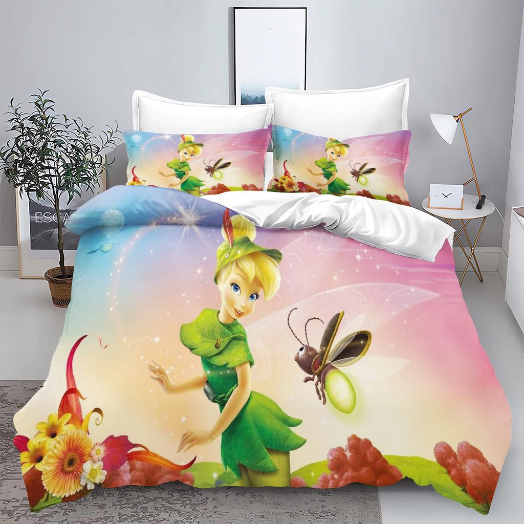 Tinker Bell Anime Disney Bedding Set Duvet Cover 100% Polyester Suitable For Children And Adults 3-Piece Set 1 Quilt Cover