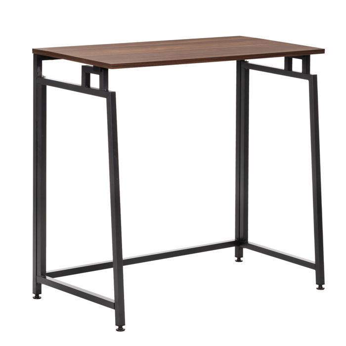 Bureau d'ordinateur - SPRINGOS - Pliable - 80 cm - Métal - Bois brun foncé