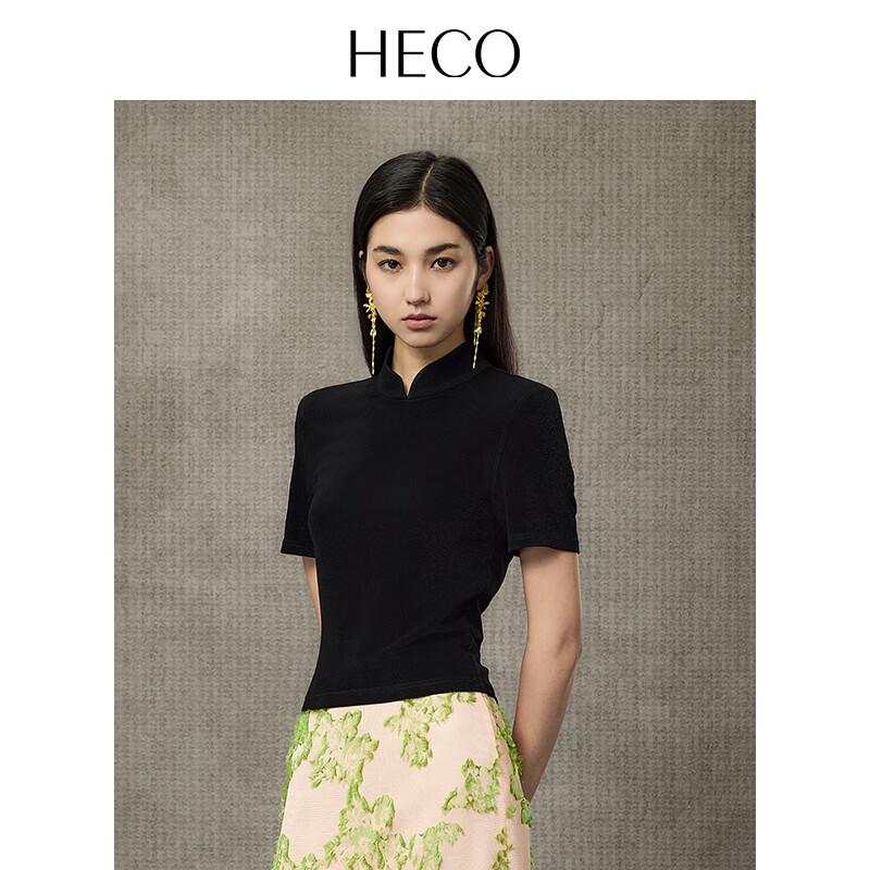 HECO New Chinese Style Disc Button Acetate Knit Short-Sleeve T-Shirt