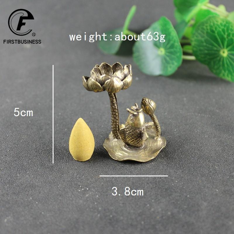 Antique Copper Lotus Flower Goldfish Figurines Miniatures Small Ornament Creative Vintage Brass Censer Home Decor Incense Burner