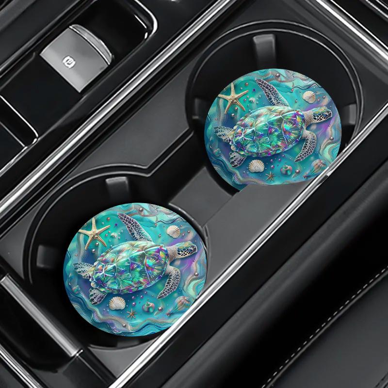 Pair of EVA Car Coasters Featuring a Sea Turtle Pattern - Non-Slip Universal Inserts for Vehicle Cup Holders