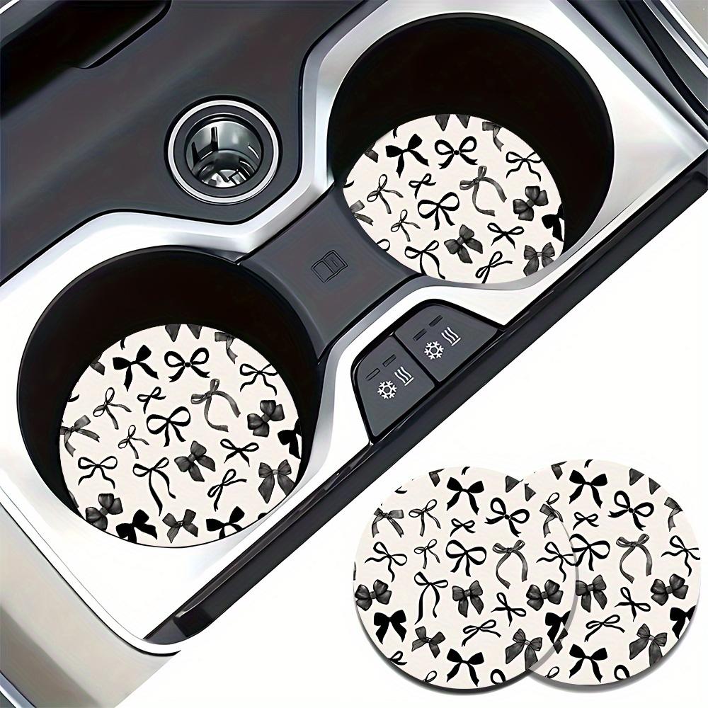 2pcs Black Bow Tie Car Cup Holder Coasters - Non-Slip Rubber Drink Mats with Elegant Bow Tie & Leaf Pattern, Fit for Car Cup Holders