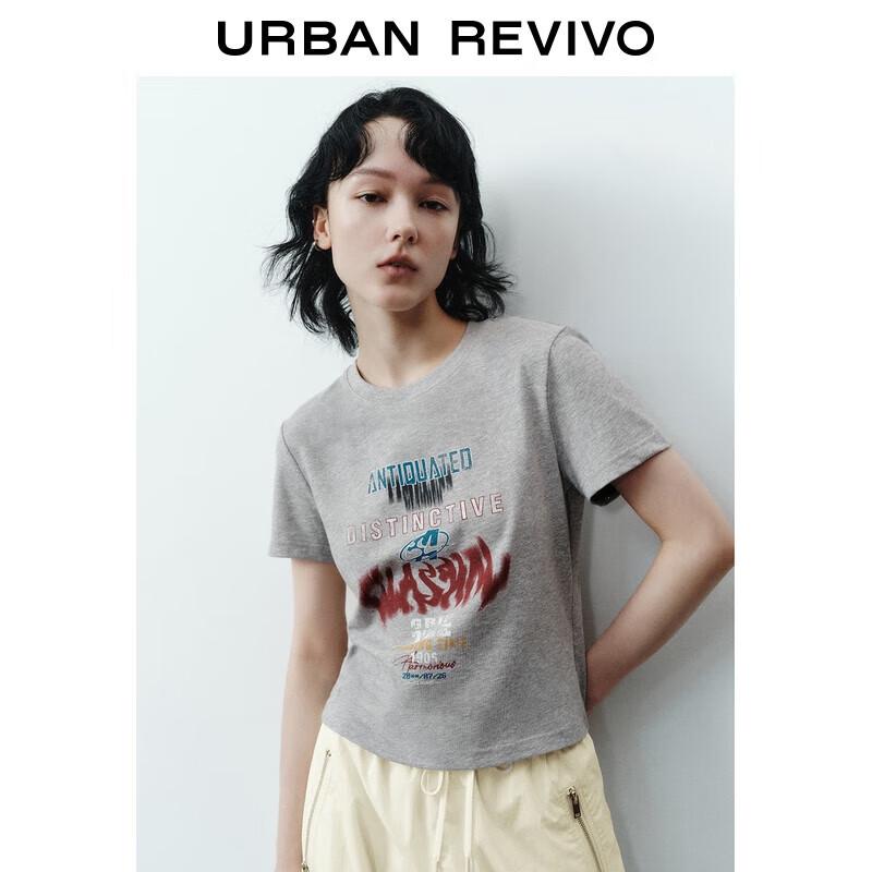 UR 2025 Autumn Women's Letter Print Slim Short Sleeve T-shirt