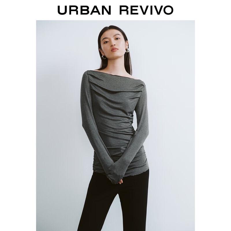 UR2025 Women's Elegant Off-Shoulder Draped Long-Sleeve T-Shirt