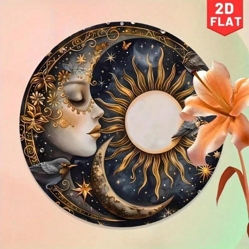Vintage Sun and Moon Metal Wall Art Aluminum Round Sign Home Decor