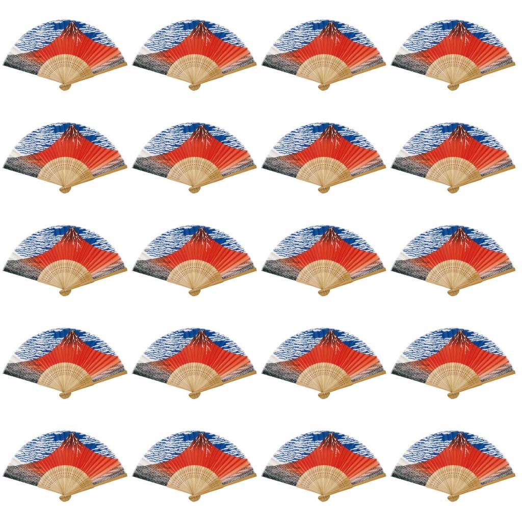 Castle Enterprises Premium Handmade Fans Set of 20 A Bulk a Great Japanese Souvenir for Foreigners [Red Fuji] - Purchase,