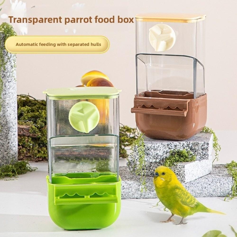 New Automatic Parrot Feeder Transparent Large Capacity Food Container Anti-Spill Cage Mount Pet Food Tray Pet Supplies