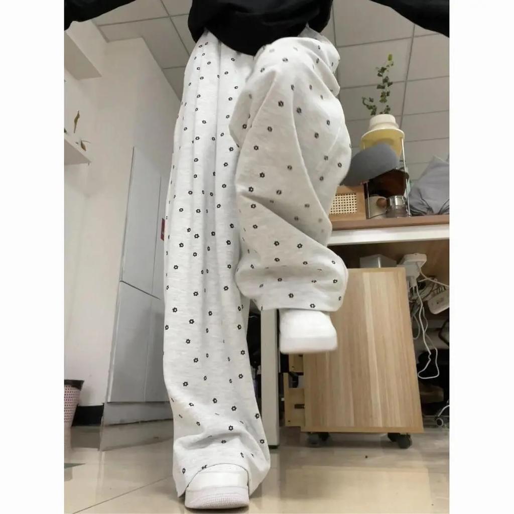 New Floral Informal Sports Pants for For Women In Spring and Summer Thin High Waist Drooping To Make Them Look Slim In Small Straight Wide-leg
