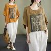 New Summer Retro Pure Cotton and Linen Printed Top for Women Relaxed Fit Pullovers of Literary Retro Casual Short-sleeved T-shirt