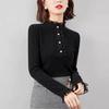 Threaded Double-sided Fleece Autumn and Winter Base Shirt for Women's Latest Standing Collar Lace Thickened Long-sleeved Inner Top