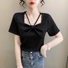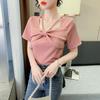 Short-sleeved T-shirt for Women's Latest Bow Design Versatile Slim Style Top for Women's