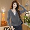 Autumn and Winter Base Button-down for Women Long-sleeved New Versatile Fitted Casual T-shirt for Spring Fake Two-piece Nail Beaded Diamond T-shirt