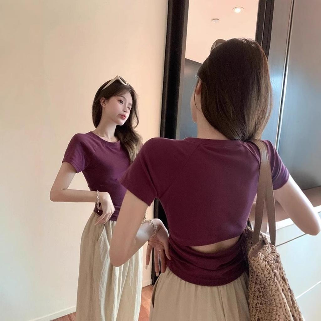 Purple Pure and Sexy Short-sleeved T-shirt for Women's Design, Backless Slim-fit and Slim Shoulder Top, Summer New Style
