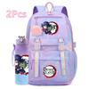 2Pcs/set Cartoon Demon Slayer Printed Backpack with 750Ml Water Bottler for Teenager Girl Boy Large Capacity Waterproof Bookbag Travel Bag Gift