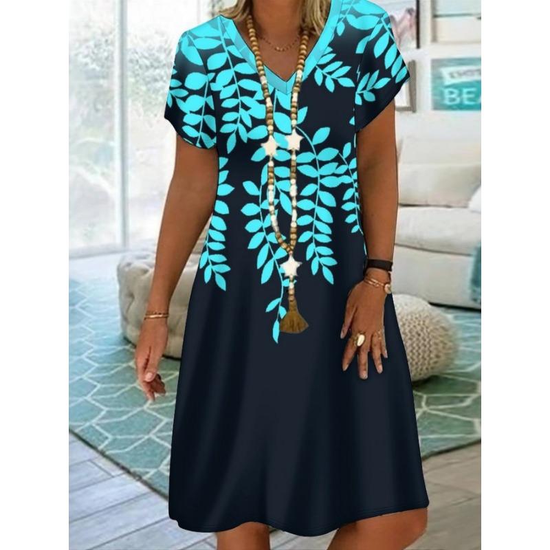 Spring and Summer New Short Sleeved Dress Printed Women's Fashionable and Casual V-neck Short Sleeved Dress Versatile and Comfortable for Commuting