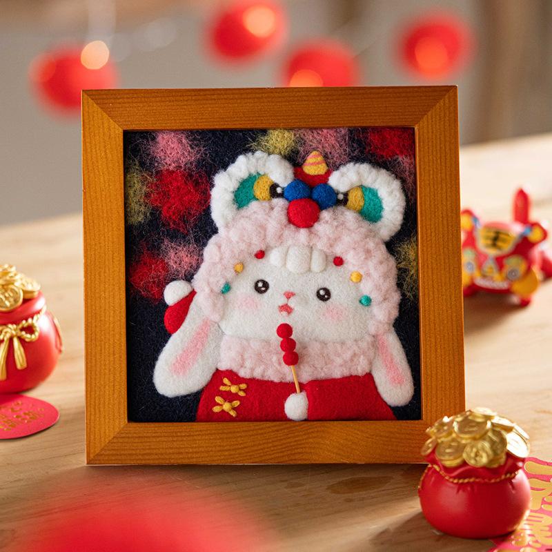 DIY Felt Bunny Frame Kit - Creative Birthday Gift Handmade Craft Decor Cute Cartoon Rabbit Statue Wool Creative Gift & Healing Home Decor Craft Set