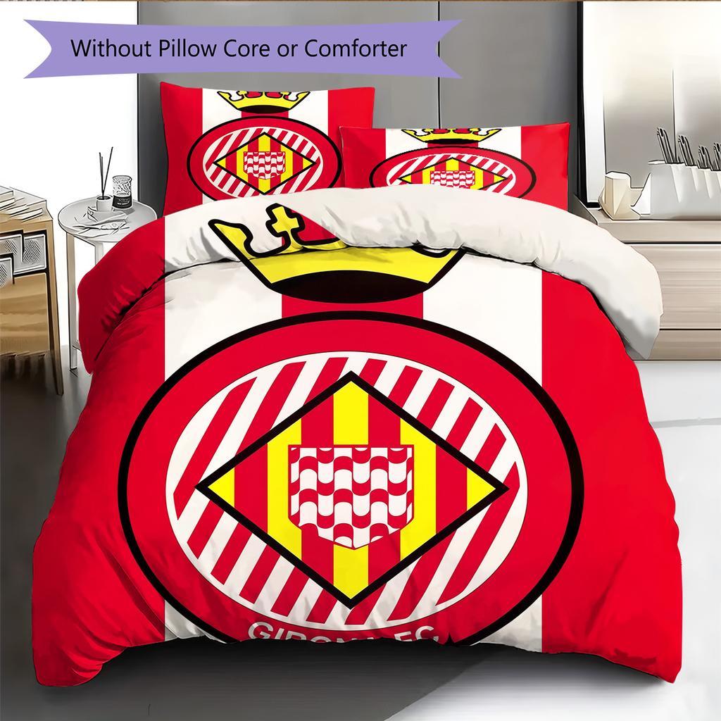 Girona FC Football Club Pattern Bedding Quilt Set Home Decoration Gift (1 * duvet cover + 2 * pillowcase without core)