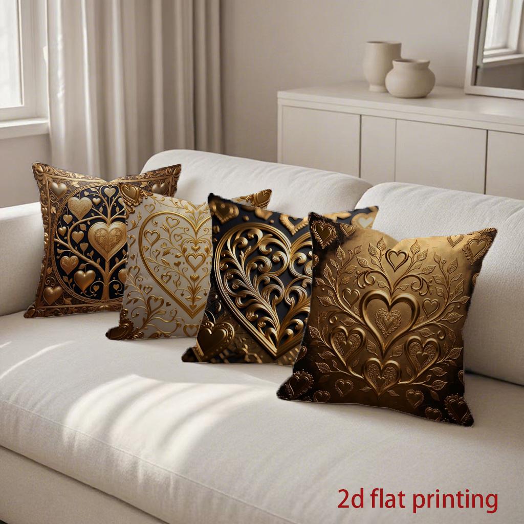 2D Gilded Heart Patterns Decorative Pillow Covers Pattern Cushion Cover Suitable For Sofa Bedroom Car Pillow Cover
