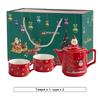 Red Ceramics Teaware Sets Santa Claus Snowman Elk Teapot Teacup Christmas Coffee Cup Saucers Stackable Xmas New Year Gifts