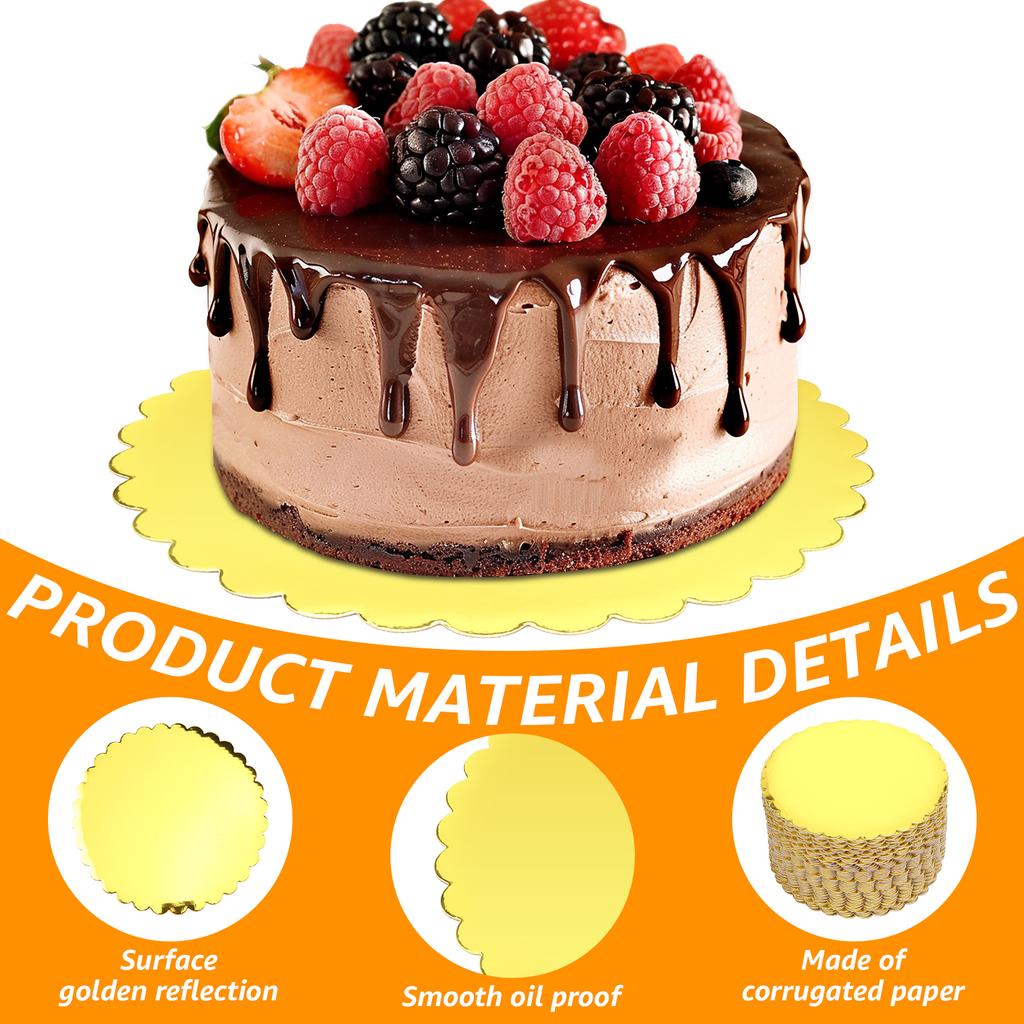 50/100Pcs 10'' Round Cake Base Board Corrugated Paper Circle Dessert Display Base Plate Gold Cake Circle Board for Home Baking