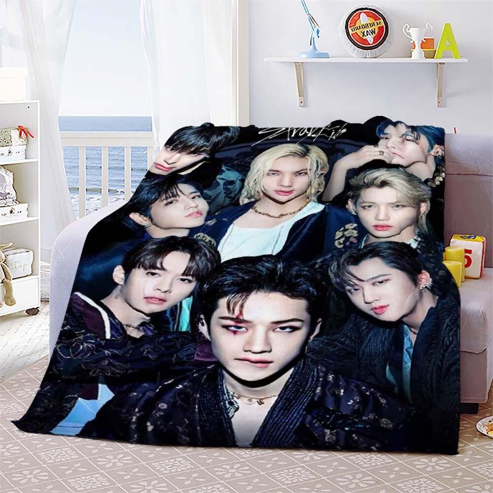 Stray Kids Blanket Soft Sofa Cover Kpop Singer Throw Blanket Flannel Blanket Lightweight Warm Bed Blankets for Bedroom Couch