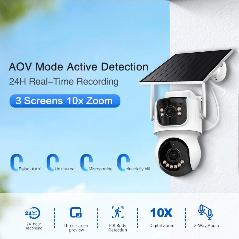 ICSee Dual-Lens PTZ WiFi Solar Camera: 10X Zoom, Low Power, Cross-Border Monitoring