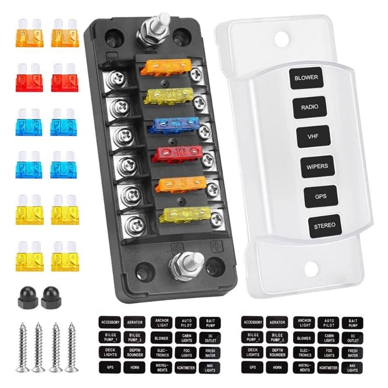 Features 6 independent 30A circuits, a total 100A capacity, and stainless steel screws for secure installation in various automotive environments.