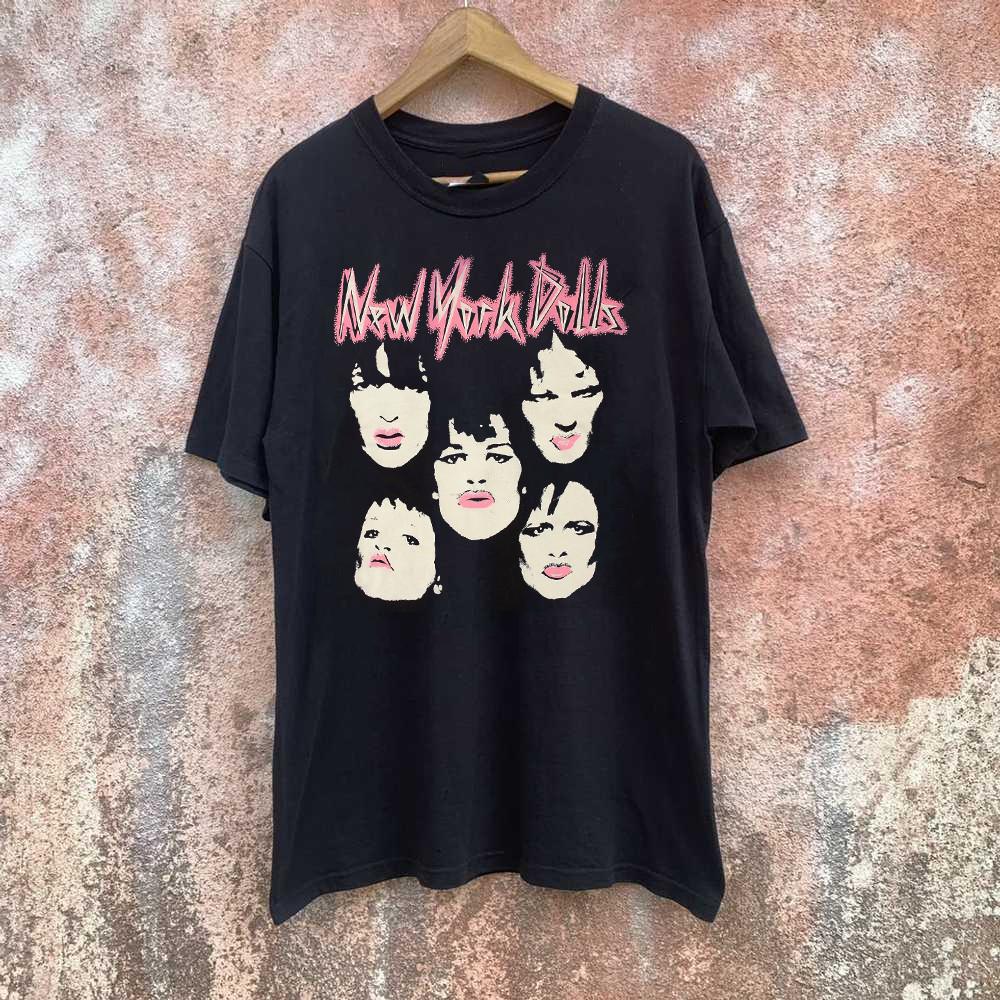 Early 80s New York Dolls Tour Black Cotton Full Size S-5XL Unisex T-Shirt