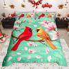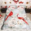 Homewish Wild Cardinal Bird Duvet Cover Set Merry Christmas Xmas Bed Set Snow Cherry Blossoms Quilt Cover Set