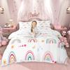 Homewish Kawaii Cherry Bowknot Duvet Cover Set Cute Groovy Flower Bed Set Cartoon Rainbow Quilt Cover Set