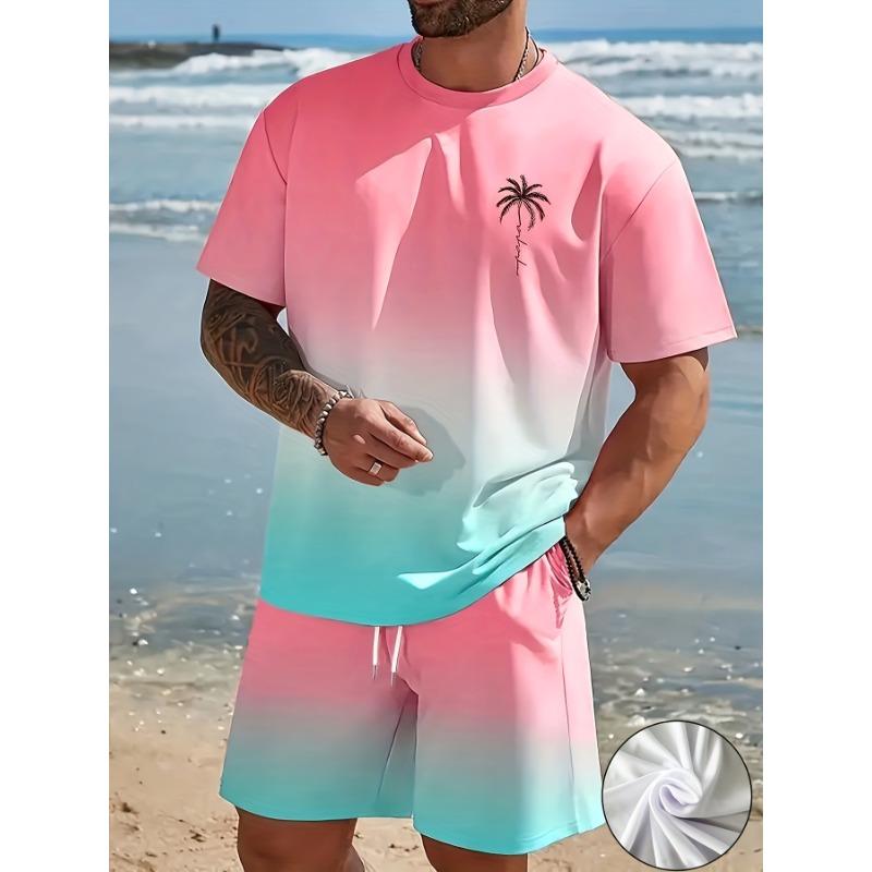 Men's Fashionable Two-piece Round Neck Short-sleeved Shorts Set, Summer Casual and Comfortable Sportswear for Men