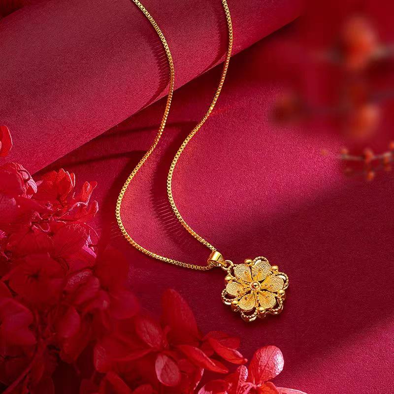 Vietnam Sand Gold-Plated Flower Pendant Necklace - Long-Lasting Color, Elegant Clavicle Chain