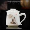 Large Hand-Painted Jade Porcelain Cup with Lid and Handle for Tea Brewing