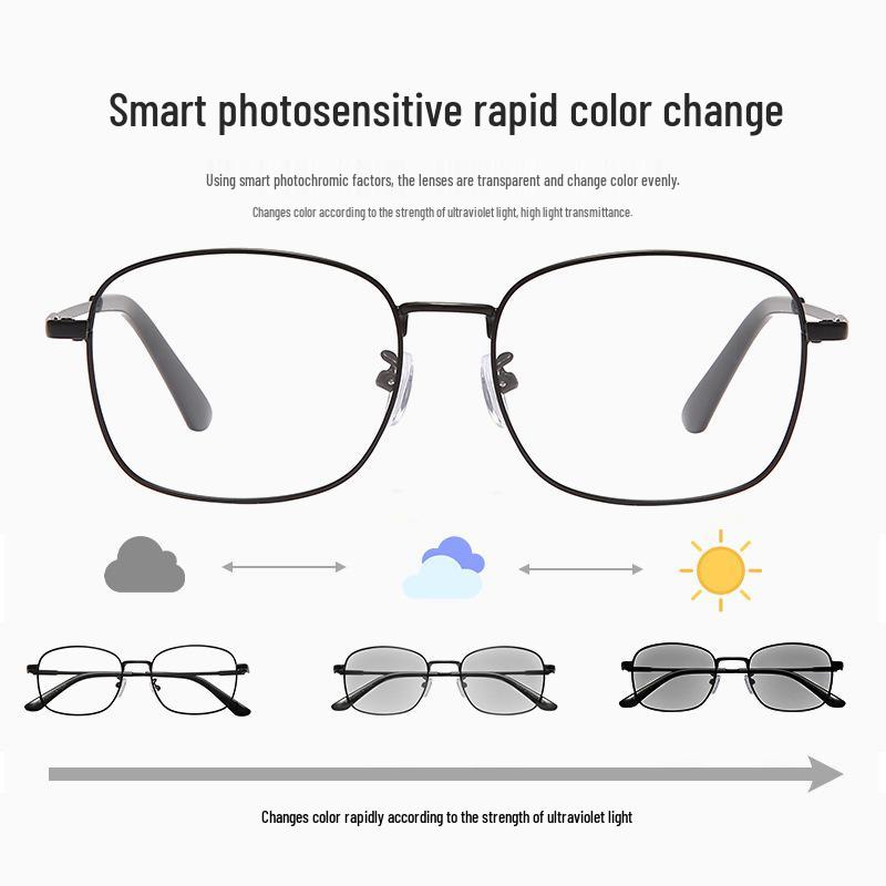 2025 Ultralight Korean-Style Photochromic Metal Glasses, Anti-Blue Light, Unisex Retro Design with Large Frame.