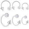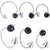 Shamballa Kristal Toplu ve Konik Uçlu C Şekilli Titanyum Barbell - Parlak At Nalı Dudak ve Burun Halkası Piercing