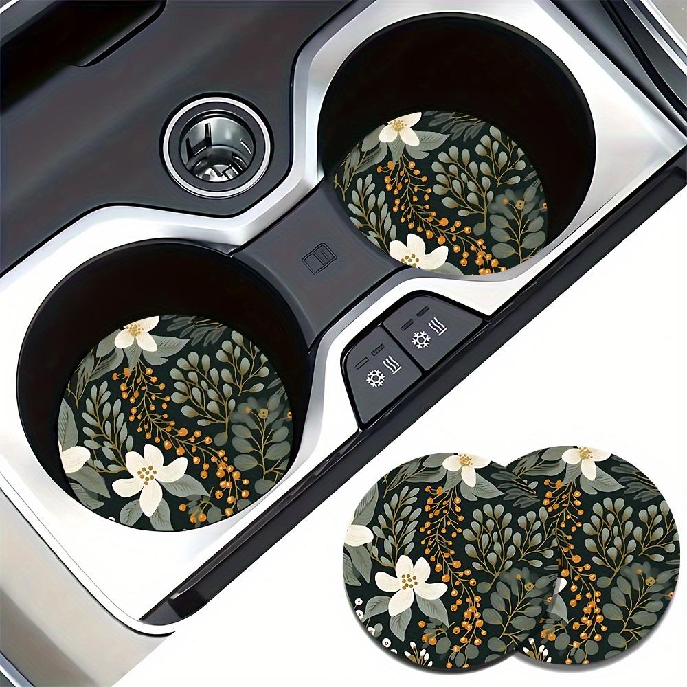 Set of 2 Absorbent Rubber Coasters with a Easy Flower Design for Car Cup Holders - Chic Interior Car Additions