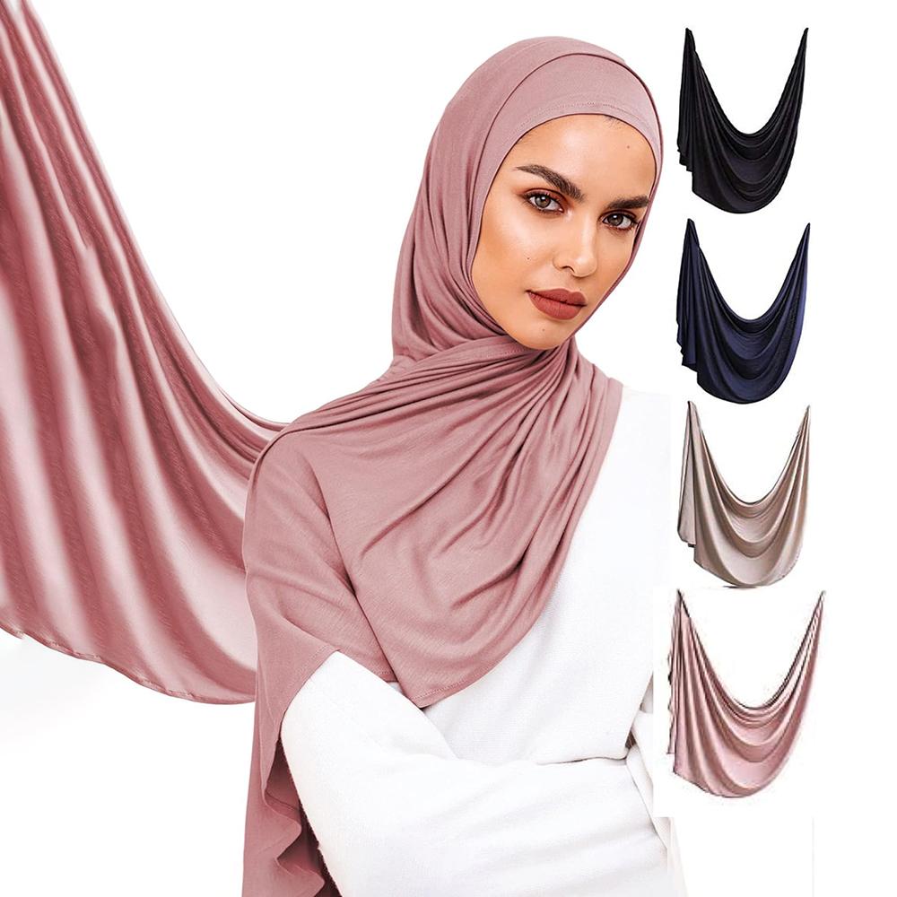 Jersey Scarf Stretchy Hijab Plain Head Scarves Women Cotton Headwrap Shawl