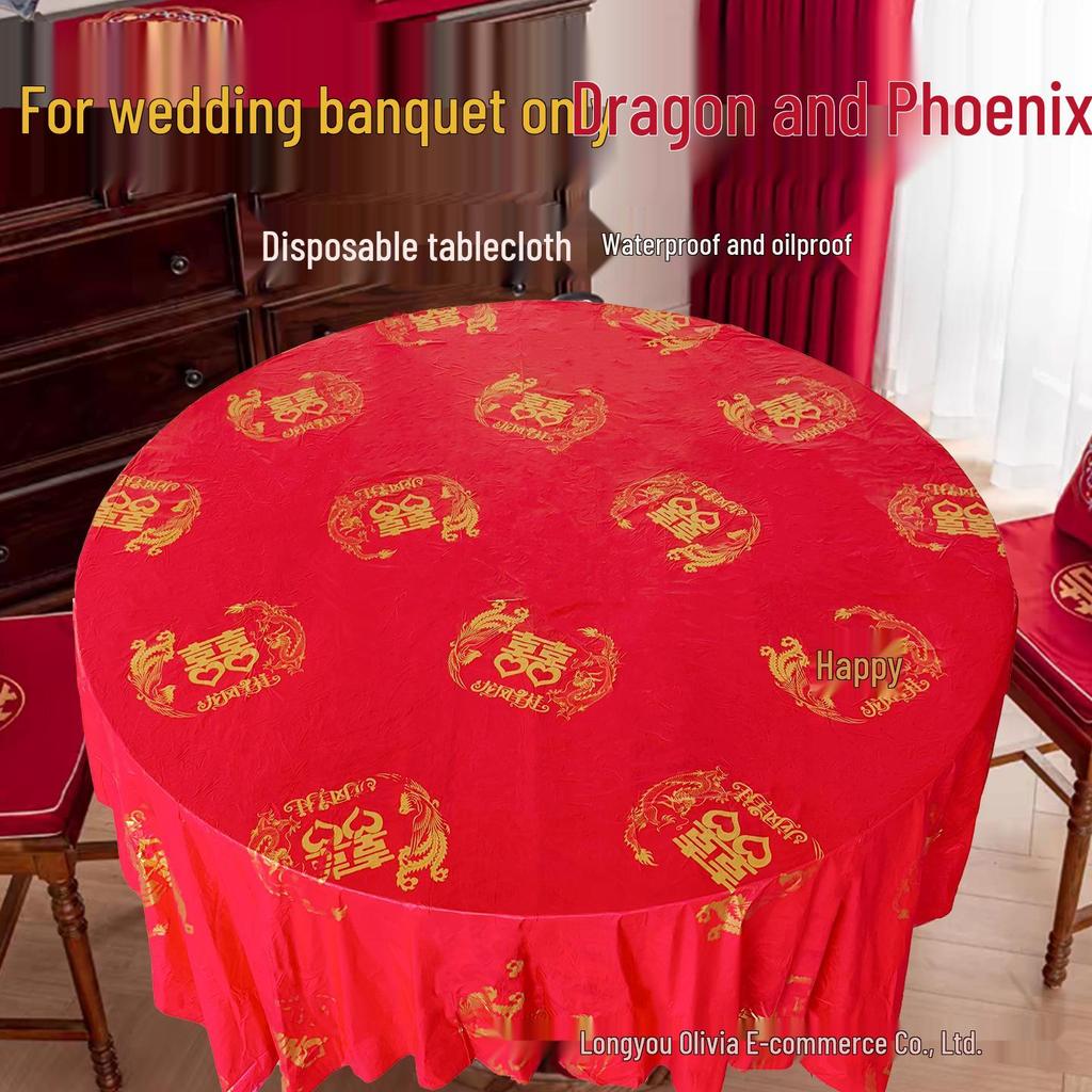 Auspicious Red Dragon & Phoenix Thickened Disposable Tablecloth for Weddings and Banquets