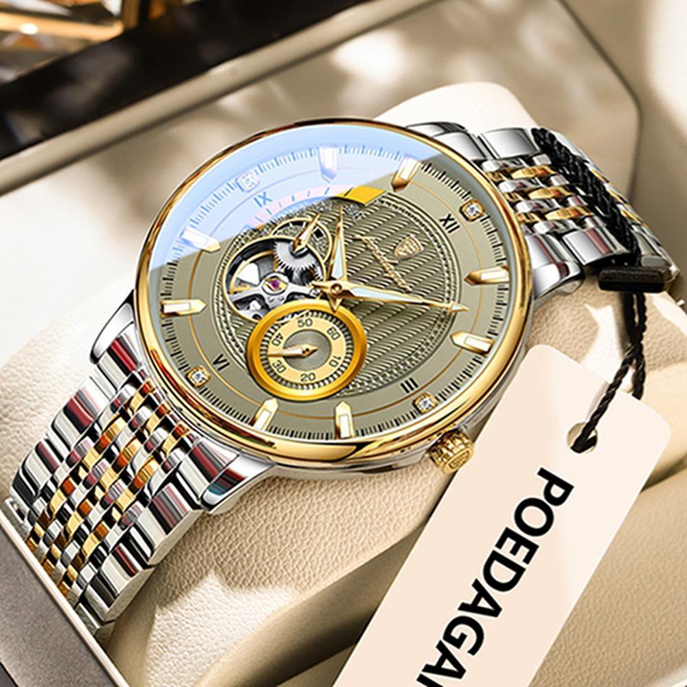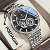 POEDAGAR Moda İş Erkek Saati Su Geçirmez Aydınlık Oyuklu Tourbillon Erkek Saat Otomatik Mekanik Saatler