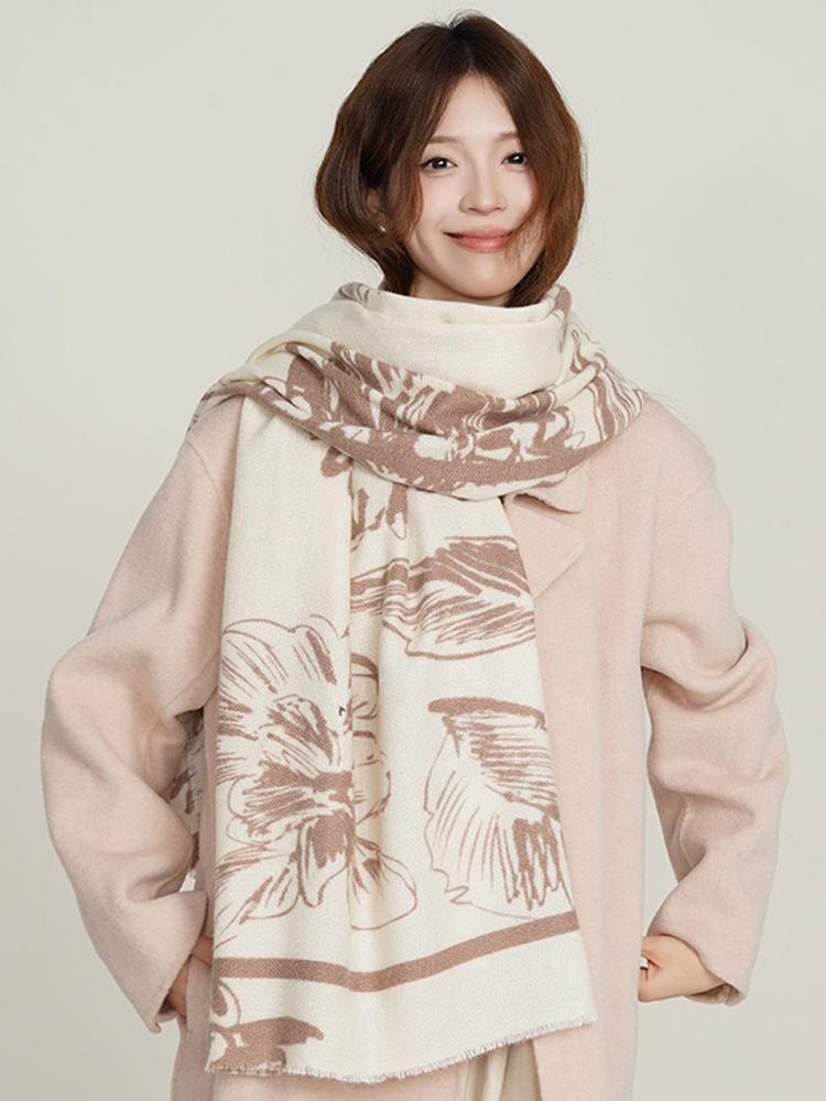 New Knitted Imitation Cashmere Scarf Autumn Winter Women Elegant Floral Print Warm Scarve Pashmina Mujer Foulard Wrap Shawl