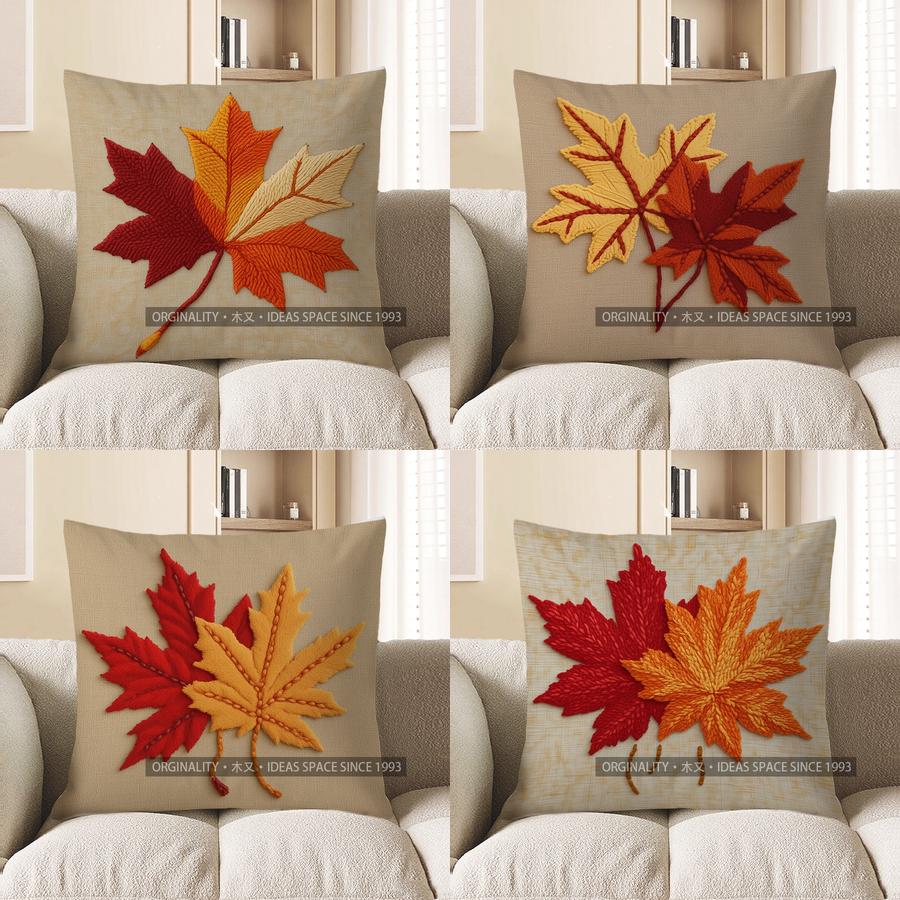 Home Decor Autumn Maple Leaf Pattern Decorative Pillow Cover Pattern Cushion Cover Suitable For Sofa Bedroom Car Pillow Cover