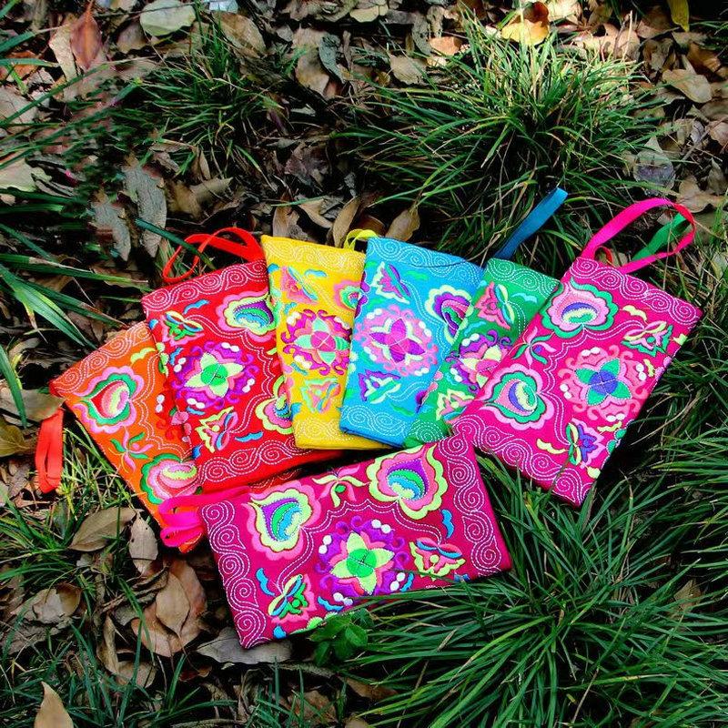 Ethnic Embroidery Clutch Bag Coin Purse Women'S Vintage Embroidered Mobile Phone Bags Wristlet Bags Wallet For Girls Gift