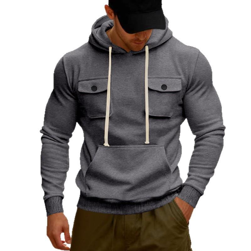 American Autumn and Winter Men's Loose Outdoor Sports Velvet Hooded Multi-pocket Casual Workwear Sweatshirt