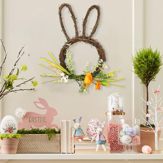 Charming Easter-Themed Design: Featuring a cute bunny shape complemented by decorative eggs, this wreath captures classic Easter motifs in a stylish arrangement. The blend of traditional symbols creates an inviting and joyful atmosphere, instantly infusing your home with holiday spirit wherever it is displayed.