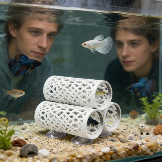 4 inç uzunluğunda olan bu 3'ü 1 arada beta balığı tüneli, küçük balıkların ve karideslerin serbestçe yüzmelerine ve güvenli saklanma yerleri bulmalarına olanak tanıyan içi boş bir tasarıma sahiptir.. Mikrogözenekli yapısı, bettalar, karidesler, lepistesler, neon tetralar, zebra danioler, salyangozlar ve diğer küçük balıklar için rahat oyun, dinlenme ve saklanma alanları sağlayarak güvenli barınak mağaraları ve akuakültür tünelleri oluşturur..