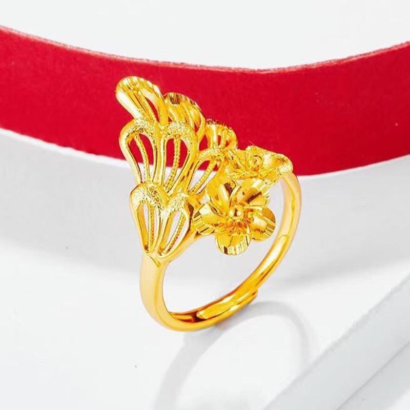 Gold-Plated Brass Phoenix Tail Ring – Openwork Peacock Design for Women