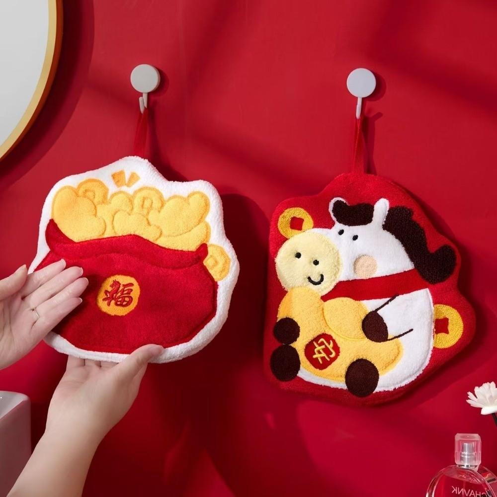 Cartoon Chinese New Year Hand Towel Soft Thick Lucky Horse Quick Drying Handkerchief Blessing Pattern Absorbent Towels