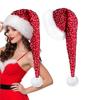 Double-Layer Sequin Christmas Hat Plush Santa Claus Hat with Long Fluffy Pompom Adults and Kids Christmas Party Decoration.