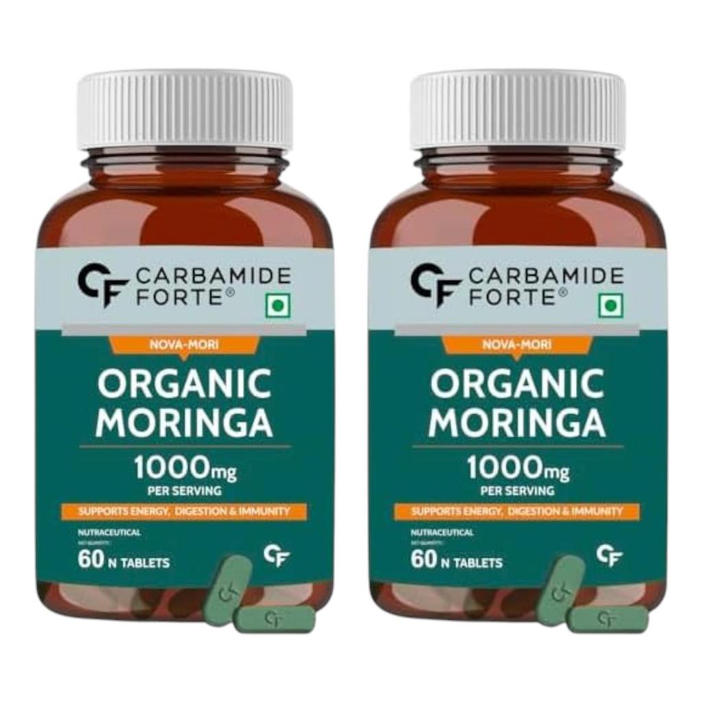 Carbamide Forte Organic Moringa Tablets 1000mg Drumstick Leaves Powder for Energy & Immunity 60 Veg Tablets