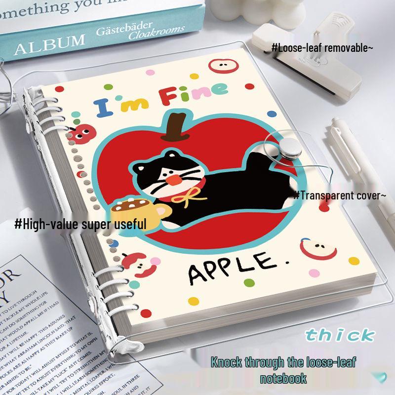 A5 Soft Shell PVC Kitty Apple Pie Ring Binder Student Notebook